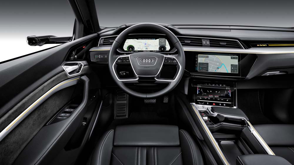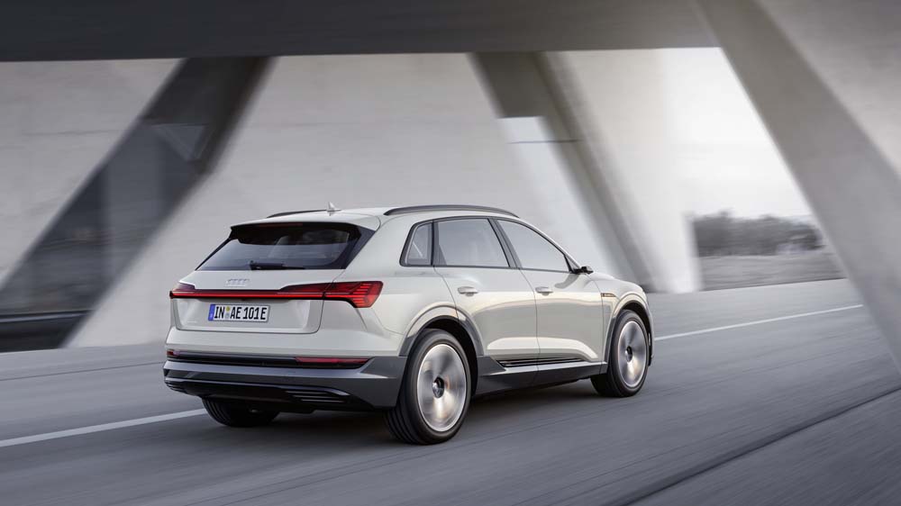 Audi e-tron dzięki sporemu nadwoziu i elektrycznemu napędowi oferuje sporo miejsca w środku i duży bagażnik. Jest to więc praktyczne, bardzo komfortowe auto, które do setki przyśpiesza w niecałe 6 sekund. Nadwozie wygląda bardzo dynamicznie, ma lepsze proporcje niż pozostałem SUV-y Audi i nic nie zdradza, że to „elektryk”.